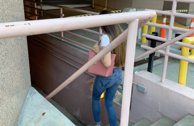 - Among the types of shots needed, we wanted a few closeups of Jenna walking in order to show how intimidated she was. This was hard because in order to achieve a quality shot we had to quickly walk backwards while still keeping the camera steady.