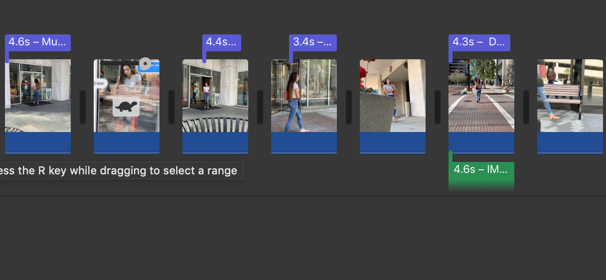 While our rough cut makes our movie look like we are just filming Jenna walk around, with editing it will be made obvious that she is being followed. Through the use of editing tools such as the Ken Burns effect and sound, Jenna will appear to viewers as incredibly vulnerable and easily susceptible to evil.